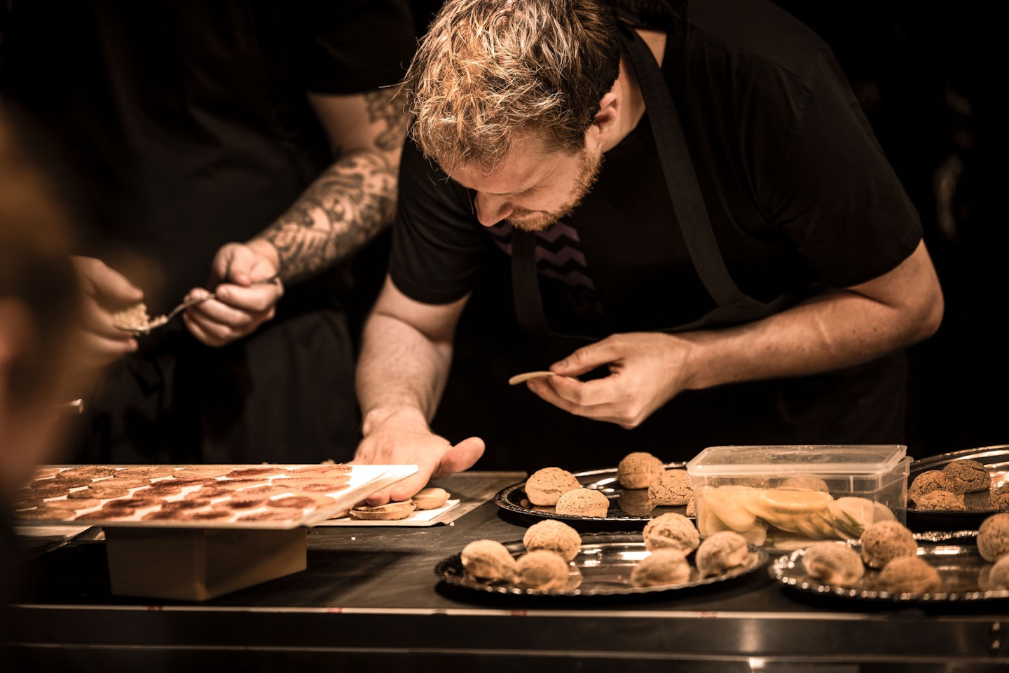Genom ett unikt samarbete har Folkteatern låtit Michelinkocken Gustav Knutsson (Restaurang Bhoga) tolka manuset och därefter komponera en förstklassig avsmakningsmeny, tillagad i ett specialbyggt kök inne i själva salongen.